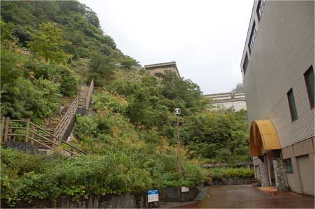 散策路はこのように発電所を覗いた後、階段でダム天端まで上がれるように続いているのです。