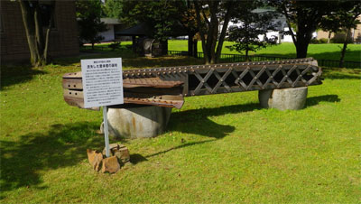 これは立山に69谷ができた昭和44年水害の時に洪水で破壊された愛本橋の一部です。