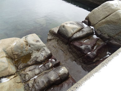と、歩を進めているといきなり岩の間にプールがっ!