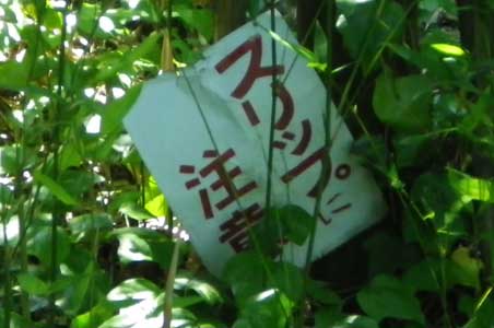 「切り閉じの間」を出て斜面のどこが通路か分からないところを進んでいきます。