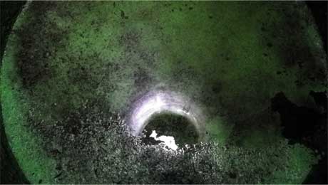 またまたライト片手に進んでいくと突きあたりは井戸のような空間になっていて