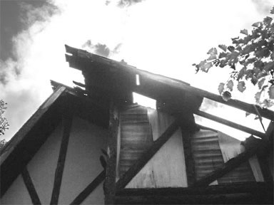 周辺を歩いていると傷んだ屋根の建物もありました。