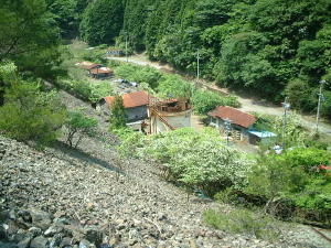 インクラインの軌跡から登ります。入り口とその前の川と道が良く見えます。