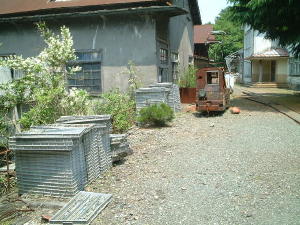 更に奥へ進むとパレットがおいてありました。 畜電車も一つ錆び錆びになりながらも鎮座しています。