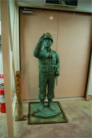 今日、一円電車が運行していた広場の横に明延鉱山の石碑と一緒に飾られている坑夫像。