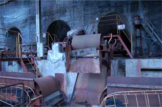 一つ一つのコンベアの上には一次破砕が済んだ鉱石をためる鉱倉があります。