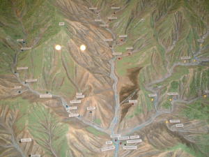 ここには鉱山の模型と航空写真、田中正造の活動、鉱害、山火事の発生