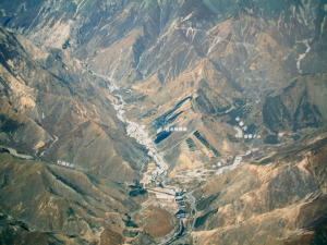 これが鉱犀「カラミ」です。航空写真ではっきりと見られるほどに
