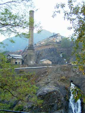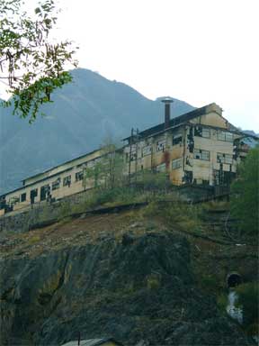 行く途中の県道からは精錬所の煙突がとても近く見えるのです。