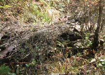 草ぼうぼうで進むのもままならない中に水路らしき溝が在り