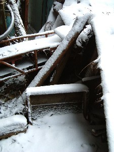 崩れた屋根と押しつぶされたコンベア。