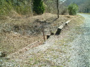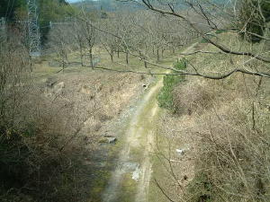 線路の跡なのでしょうか。それとも作業用の車の轍でしょうか。
