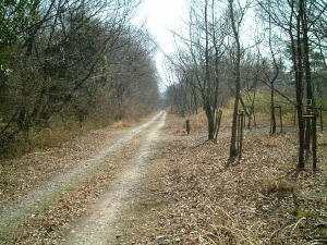 公園の東の端に「旧線路バラス道」と名づけられた道が通っています。