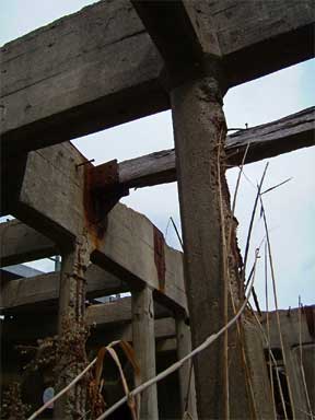 記憶の洪水を引き起こした船室のコンクリート柱。
