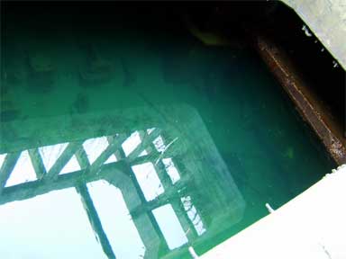甲板から石炭をたくさん積んでいた船倉を覗きます。