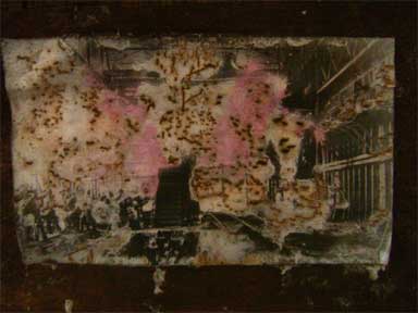 カビや水で汚染され原形を留めないほどになってしまった資料を