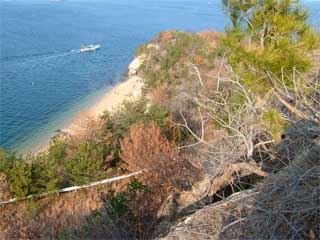 高さ40mあまりの山の上から眼下には美しい海と浜辺。