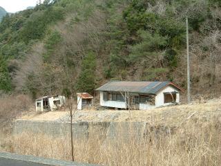 曲がった道を進むとまた廃屋です。