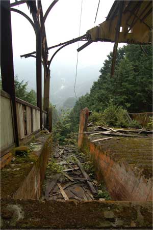 ホームの下の土台も地面が崩れて滑り始めている為に傾斜が更にきつくなっていて