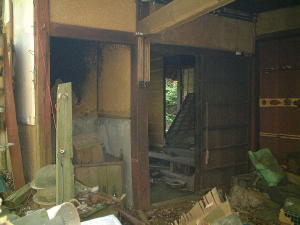 玄関の扉も部屋の襖も外れて落ちています。