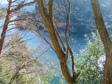 木立の合間からでも青い湖面がこんなに綺麗なのですから