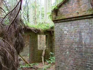 発電所の奥にあった小さな建物(右)は小口積みでした。