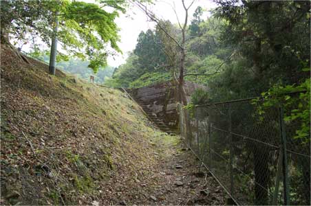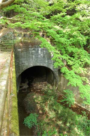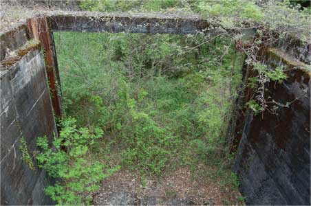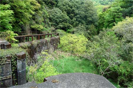 水圧鉄管が走っていた斜面を登りきるとまた古びたコンクリート建造物が出てきます。