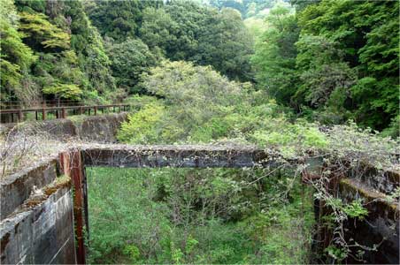 これは発電所に行く水圧鉄管と別の方向、宇治川の下流に向いています。
