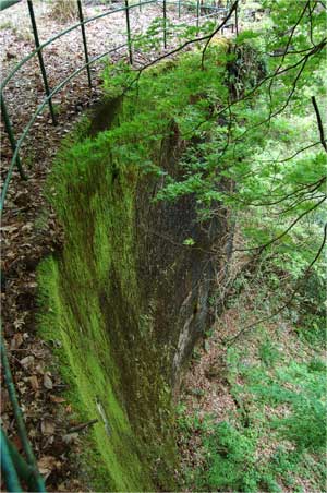 沈砂池の壁には苔がこんなに生えていて紅葉の新緑と同じ素敵な緑色でした。