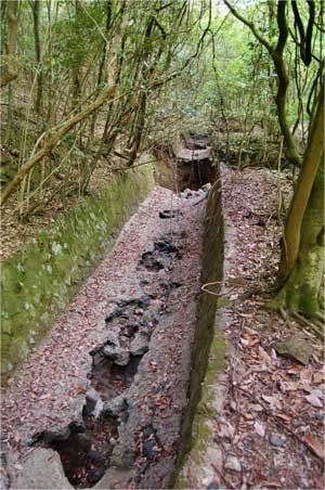 沈砂池の上流部です。斜面に水路が走っていました。