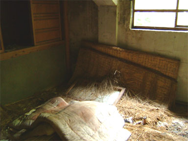 ぼろぼろの畳とぼろぼろの布団。