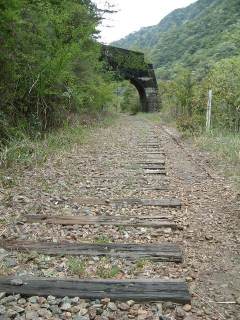 歩き難さひとしお。枕木の上でなく横の部分をてくてく進みます。