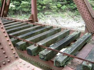 枕木の下は渓谷の激流です。足跡は流石にありません。