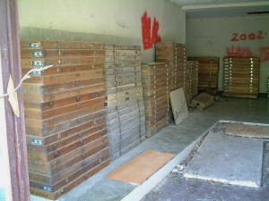 下駄箱が並んでいた場所を大量の木箱が代わりに埋め尽くしていました。
