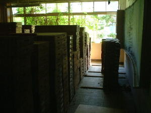 その数は本当にたくさんで廊下も木箱で一杯です。