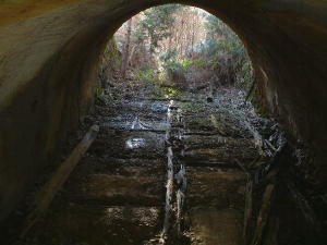 トンネルの中から振り返ると入り口がシルエットになっています。
