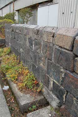カラミ石の擁壁や塀は車道の横にあります。