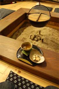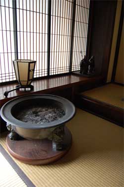 囲炉裏のある茶の間は天井が高くて綺麗です。