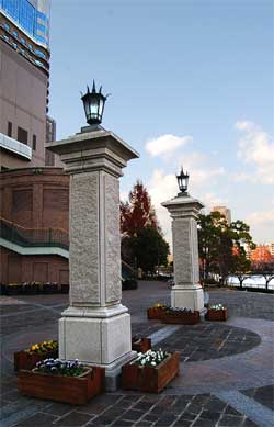 アクアライナーのOAP港から上がってくるとまずこの門柱が目につきます。