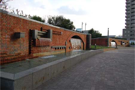 この水景は、この場所が旧三菱金属株式会社大阪精錬所跡地であ