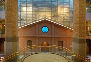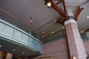 天井の梁や円形のライトなどにイメージの復元がなされています。
