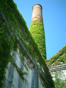 見ましたが、強烈に蔦に覆われて緑の煙突になっていました。