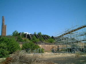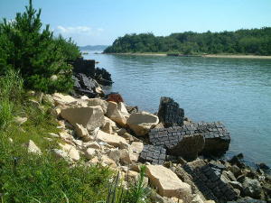 海側の道を行くと御影石とカラミ煉瓦の廃棄場所のような