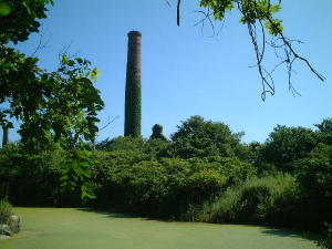冬に来た時は水面に移っていた煙突が....。