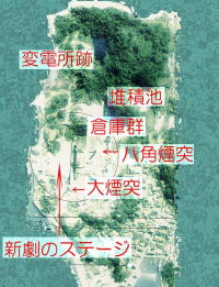 現地で入手した新劇のポスターの裏には犬島の航空写真が有りました。