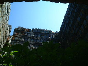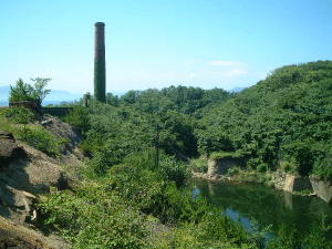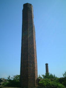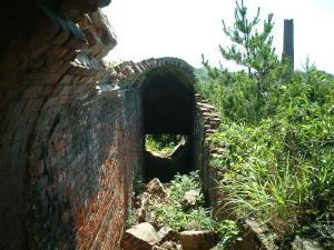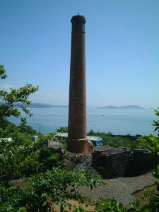 一番高台にある八角煙突。鹿島組の技術でこのまま、崩れかけたままで