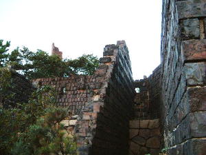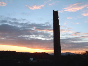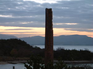 崩れた海側の煙突がシルエットになっています。