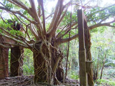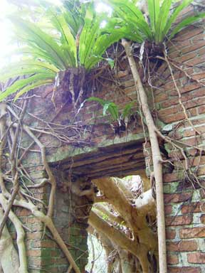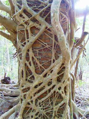 神経細胞にも似た南国の木の枝は遺構を絡めとっています。
