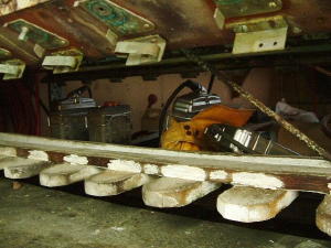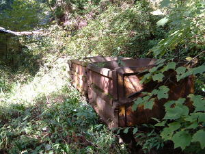藪の中に鎮座するトロッコがありました。