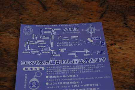とにかくこの方位磁石を中で使用して坑道内部をあちこちうろつき回って答を探し出すアトラクション。